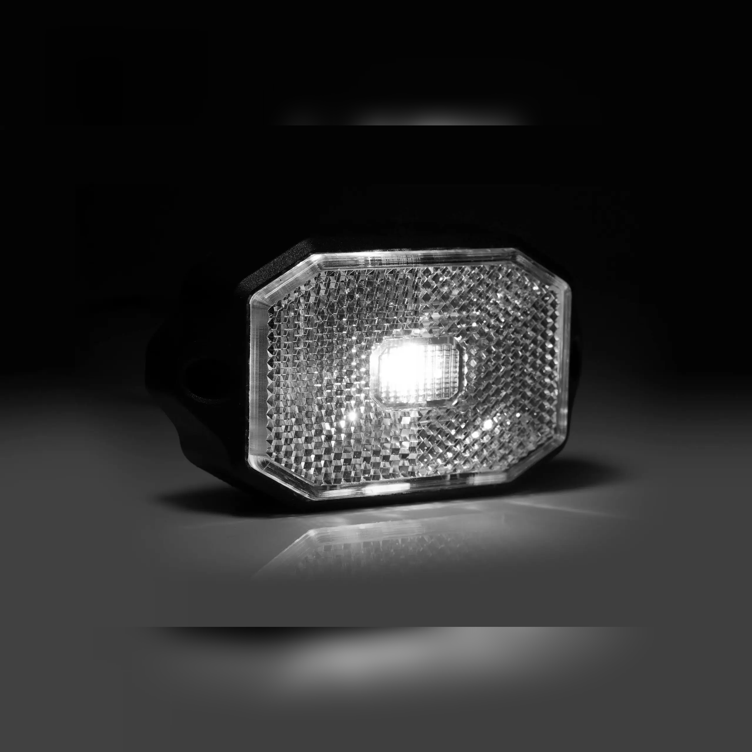 LED obrysová lampa s reflektorom, plochá montáž, bez kábla, teplá biela farba neoslňuje vodiča v spätných zrkadlách.